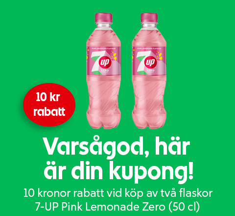 *Få 10 kronor rabatt vid köp av två flaskor 7-UP Pink Lemonade Zero (50 cl).