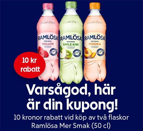 *Få 10 kronor rabatt vid köp av två flaskor Ramlösa Mer Smak (50 cl).